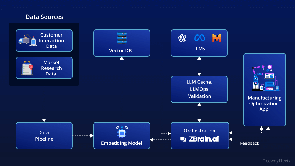For instance, in product design, generative AI can create complex shapes and structures that are both lightweight and strong, which are difficult to achieve with conventional methods. In production, it can optimize layouts and workflows to minimize waste and improve efficiency. The result is a more agile and responsive manufacturing process that can adapt to changing market demands.